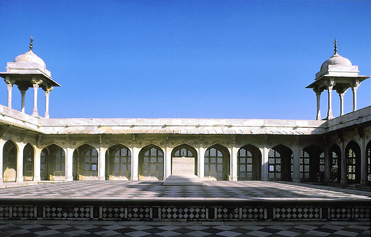 アクバル廟の最上階のみ総白大理石でつくられ、ジャーリー(格子細工)の回廊で囲まれている。 未完とも言われるが、蒼穹をドーム屋根とみなした墓室だと考えられる。 基壇の中央にアクバルの模棺(セノターフ)が置かれ、地下墓室に本棺が置かれている。