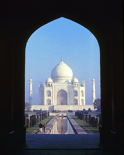 早朝のタージ・マハル廟を 南の大門から望む、アーグラ、1648年。
