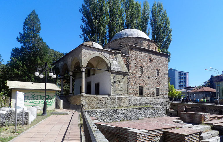 ポーチと礼拝室の間の石造壁部分が、失われたミナレットの基部をなしていた。
