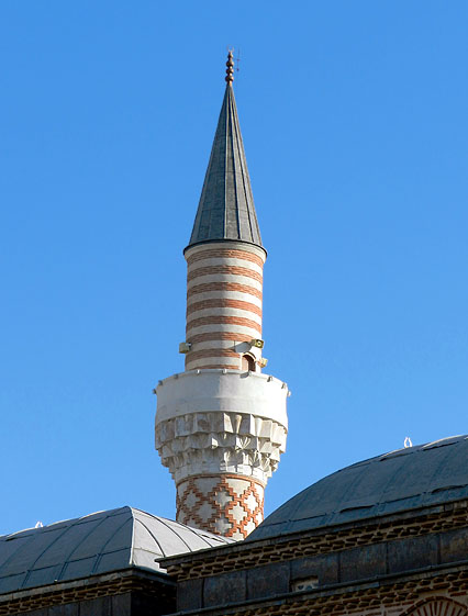 ミナレットはトルコ型で、ムカルナスで支えられたバルコニーがあり、