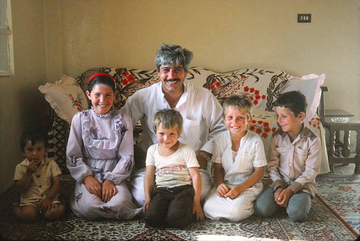 アパメアの遺跡で気分が悪くなった私を、オートバイで自宅につれていって 世話をしてくれた、 アブド・アルラザク・ハサン・クフラウィ さんと、その5人の子供たち。 興味深いことに、シリア人は 子供の時から、日本人と同じような座り方(正座)をする。 奥さんは、成人イスラム女性の常として 写真を撮られるのを嫌がり、台所に逃げてしまった。 娘のファーティマが こんなに嬉しそうなのは、私が折鶴を 折ってあげたから。