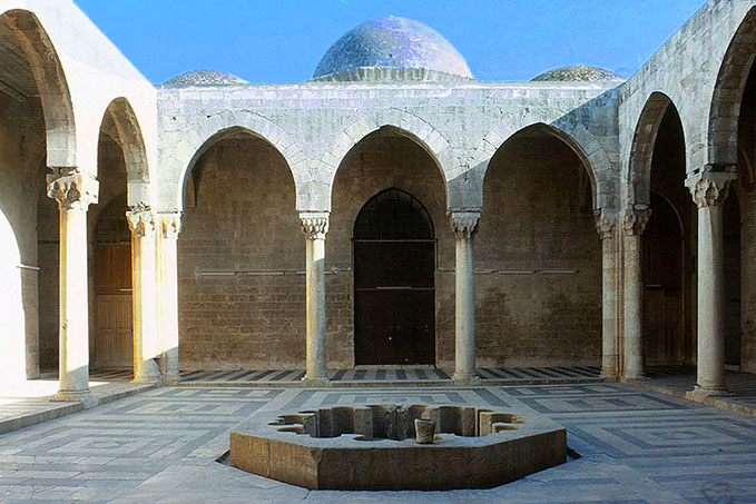 アレッポのフィルダウス学院内部、床に泉のある中庭。