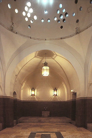 ハンマームは 通例ドーム天井で、ガラスの入った円形天窓群から採光する。