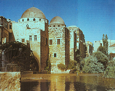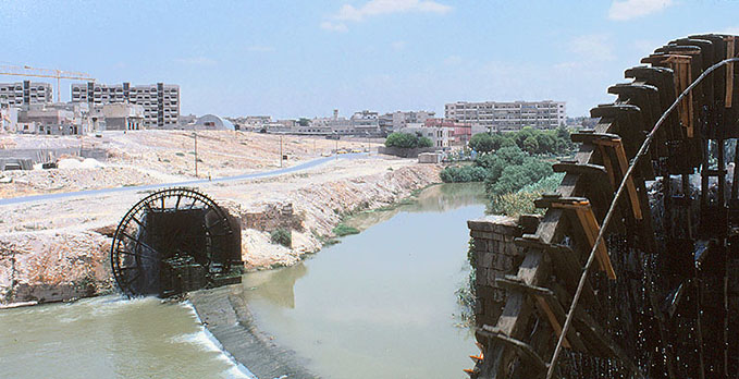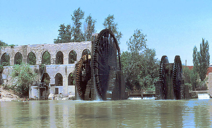 汲み上げた水を運ぶ「水道橋」である。ハマ-の町には こうした水車が