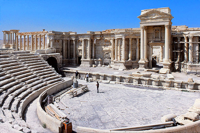 パルミュラの小劇場。2世紀前半の建設と推定されている。 舞台と客席とが親密な一体感を持てる 実に良いスケールの劇場で、 ヴィチェンツァのテアトル・オリンピーコや 旧帝国ホテル内の小劇場を思い起こさせる。