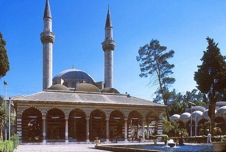 ダマスクスの、スレイマンのテッケの モスク。 シナンの設計。 シナンの作品の中では、ユシュキュダル(イスタンブル)のミフリマフ・スルタン・モスクを 思い起こさせる。 中庭に大きな水槽があり、右手に並ぶ小ドーム群がスーフィーの個室。 中庭をへだてた、モスクの反対側には救貧食堂(現在は展示室)がある。