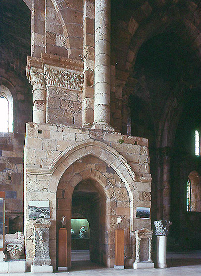 一本の剛柱のみ、柱脚が高い台座となり、アーチ開口が設けられている。