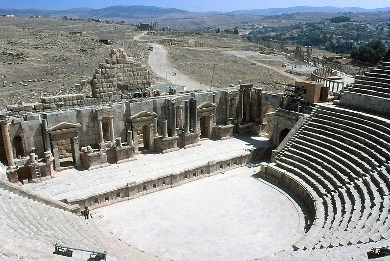 ジェラシュ(ゲラサ)の野外劇場。 右上にフォルムと カルドが見える。