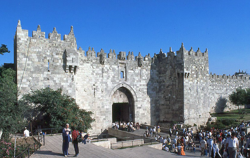 イェルサレムの旧市街への入口をなす8つの門の内、最も大きなダマスクス門。高さ約14m。