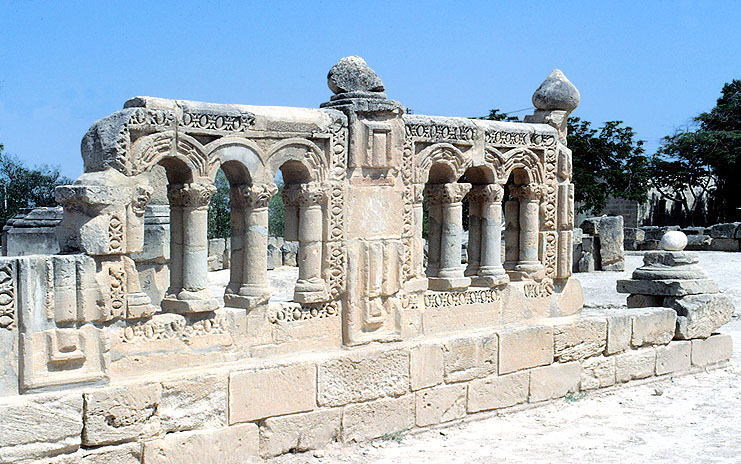 ヒルバト・アルマフジャルの宮殿。 プールの壁面装飾。