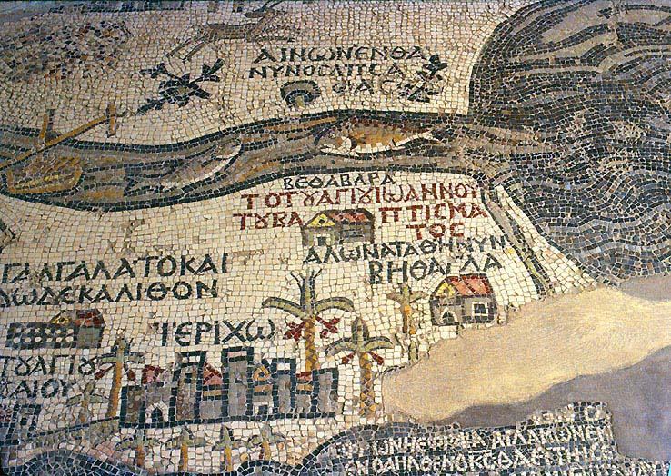 マダバの 聖ゲオルギオス聖堂床、イェルサレム・モザイク地図、6世紀。