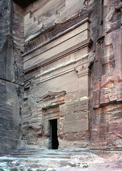 ペトラの都市遺跡、アウター・スィーク(右側)に面する石窟墓のひとつ。