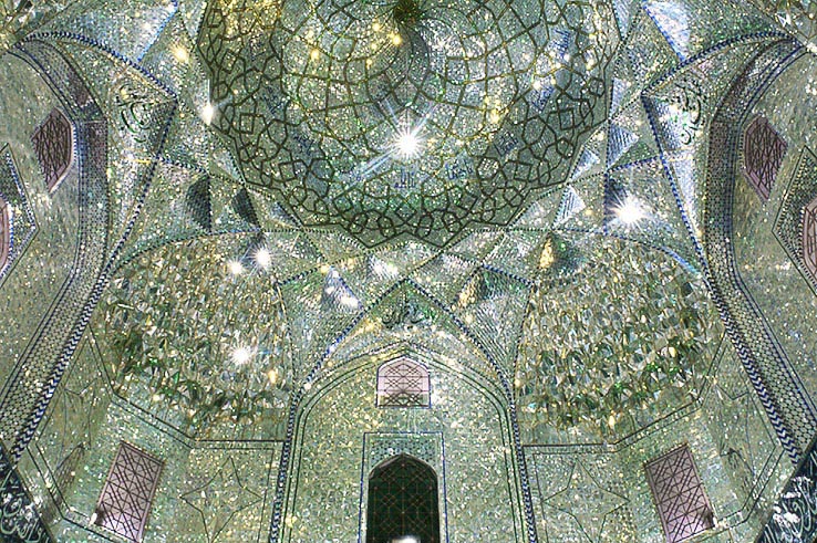 すべて鏡の小片で仕上げられた、まばゆいばかりの天井