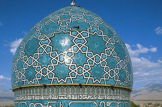連続星型パターンのタイル細工が見事。サファヴィー朝の初期に建てられた。