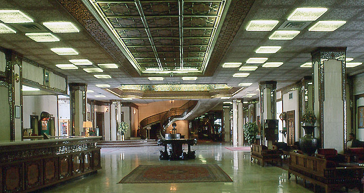 キャラバンサライを転用したアッバーシー・ホテルのアマディーガ通り側に増築された棟の1階ロビー