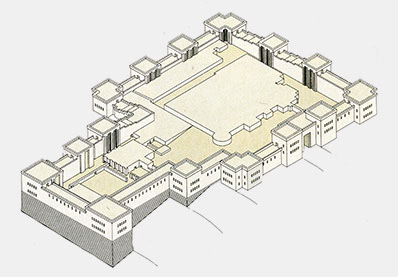 パサルガダエのプラットフォーム(アクロポリス) プラットフォーム(アクロポリス)の上にあった城塞・宮殿の復原図 (From Patrick Ringgenberg "Guide Culturel de l'Iran", 2006, Tehran)