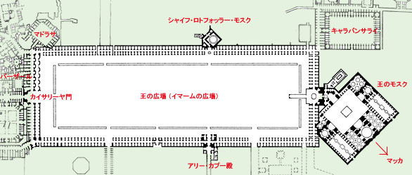 イスファハーン、王の広場(現・イマームの広場)の平面図