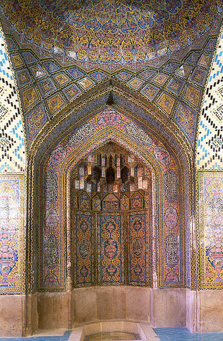 ピンクを基調として、これほど華やかに装飾されたミフラーブは、他に見たことがない。