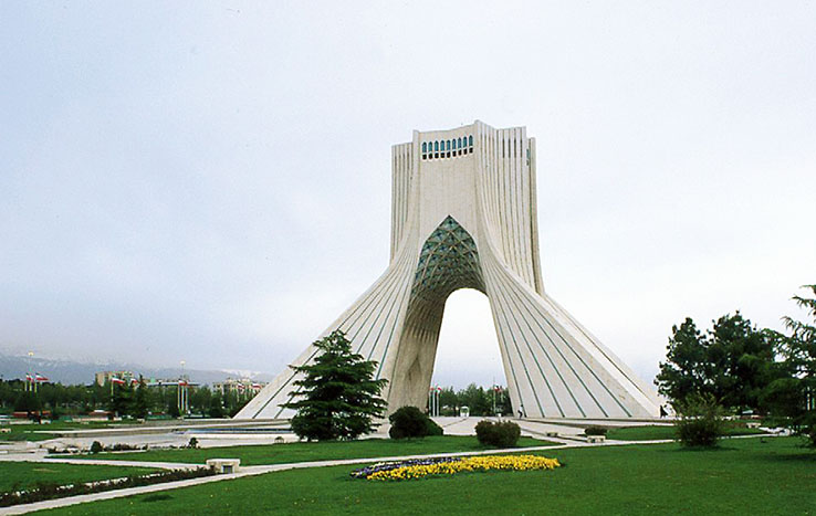 テヘランの アーザーディ(自由)の塔 双曲放物面で構成した現代建築。 内部の階段で、展示室を巡りながら 頂部の展望ホールまで登れる。 もとはシャーヤド(王の記念塔)と呼ばれたが、革命後「自由の塔」と変えられた。 高さ 45m、アーチの内法高さは21m。 The Shahyad (Azadi) Tower