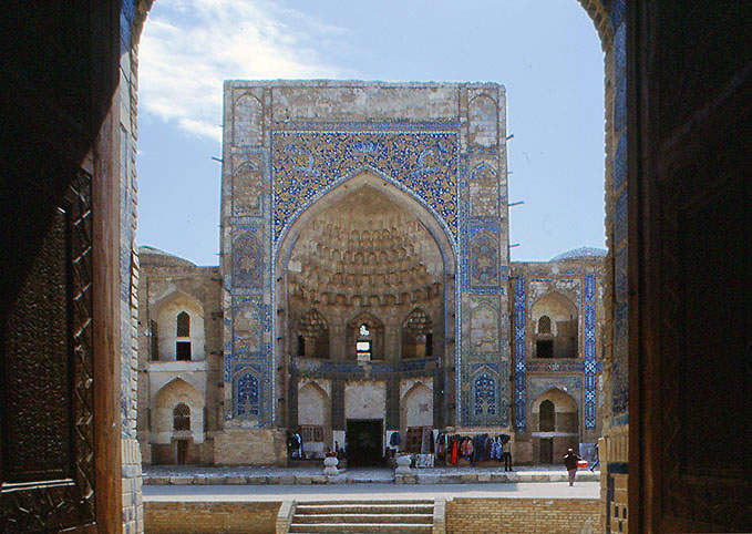 向かい合ったウルグ・ベク学院のピシュタークから眺める。