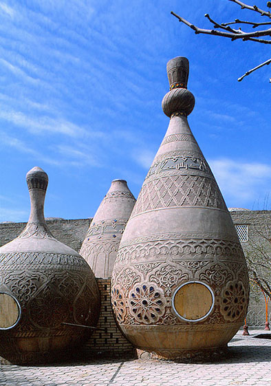 チャール・ミナールの近くのチャイハーナの中庭にある大きな壺。