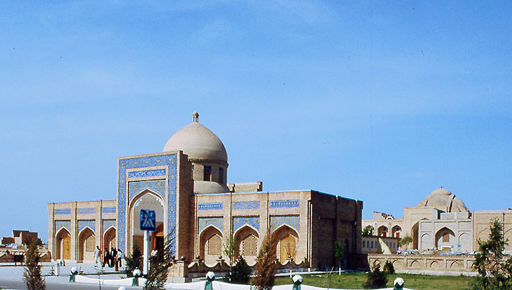 バハー・ウッディーン廟の境内を前面道路から見る。ブハラ