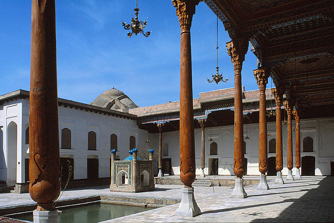 ブハラ近郊のバハー・ウッディーン廟、 ハウズ(池)のある 中庭