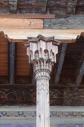 木製ムカルナス装飾の柱頭をもつ柱