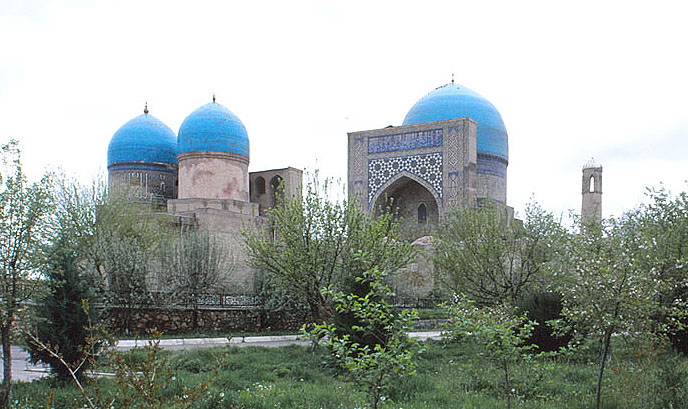 向かいは双子ドームの シャムスッディーン・クラール廟(右)とグンバシ・サイーダン廟(左)