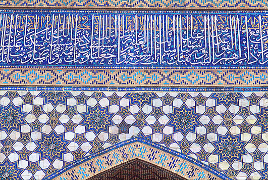中庭に面する 前面のイーワーン上部、タイル装飾詳細。