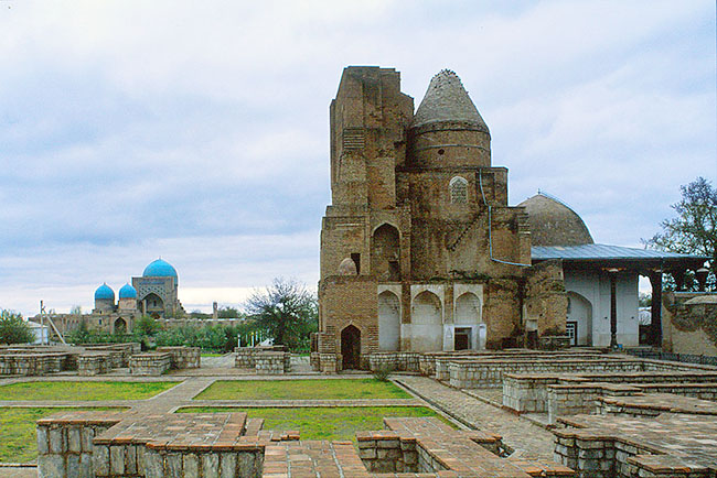 左遠方に コク・グンバド・モスクと 双子ドームの廟が見える。
