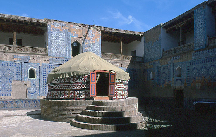 宮殿の中庭には、ユルトのための レンガ造の円形基壇が作られることが多かった。