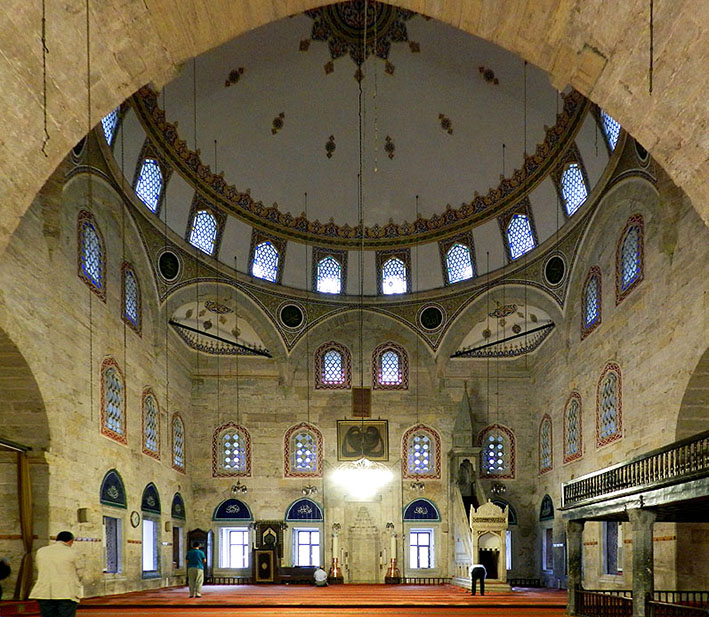 バヤジト2世モスクの内部。 ミフラーブとミンバルは 白大理石で作られている。