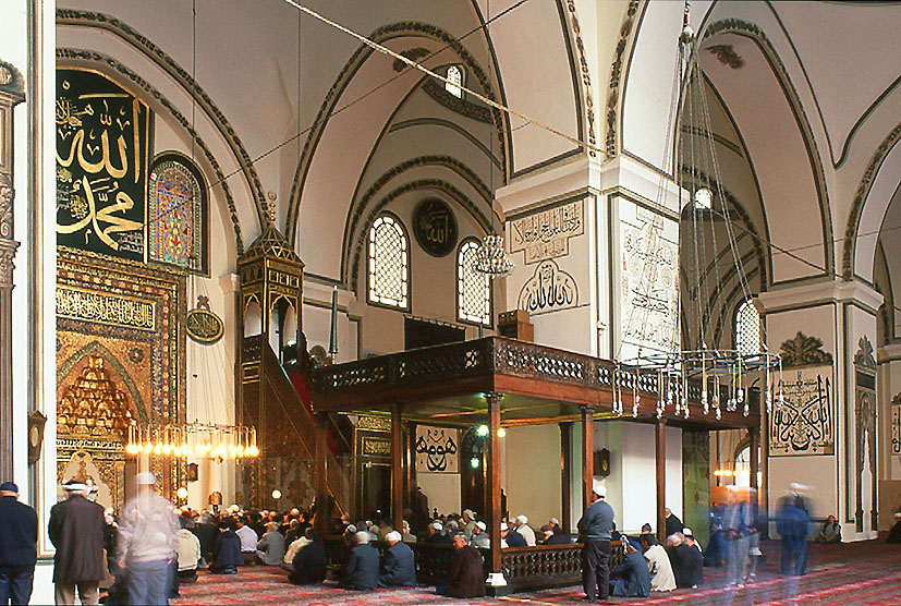 ブルサの ウル・ジャーミ(大モスク)で礼拝するムスリム