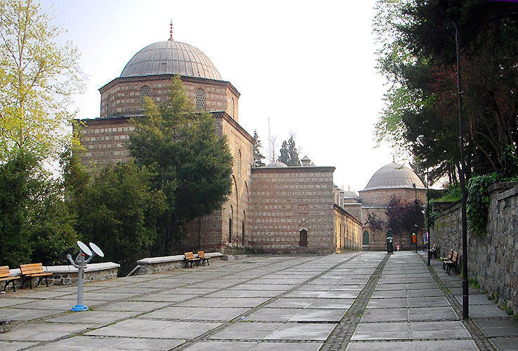 左がマドラサで、一番奥に見えるのが バヤジト1世の廟、右の擁壁の上にモスクがある。