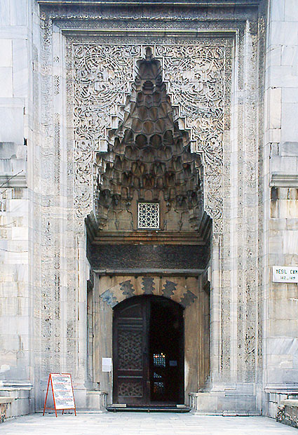 ブルサの イェシル・キュリエ(モスク複合体) イェシル・ジャーミイ(緑のモスク)の入口イーワーン アーチではなく、水平に石を積んだ 持ち出し構造