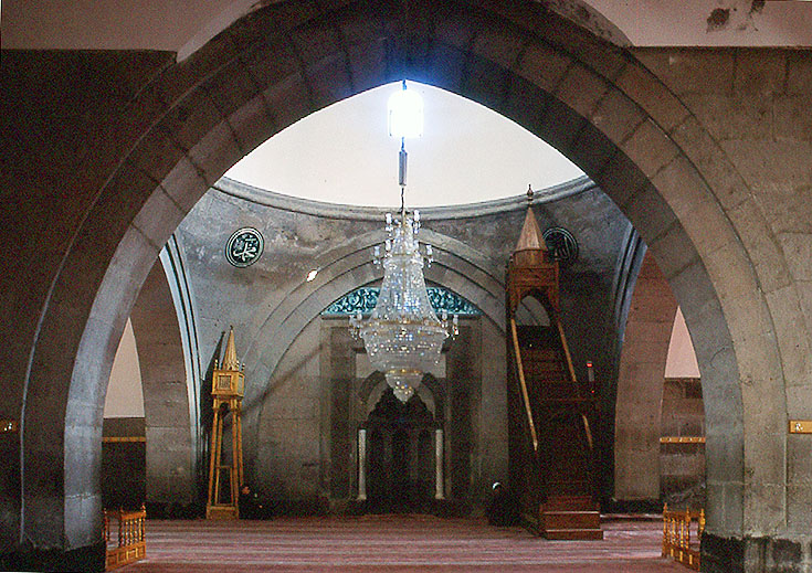 フナト・ハトゥーンのキュリエ、カイセリ モスク内部、ミフラーブとミンバルを見る。