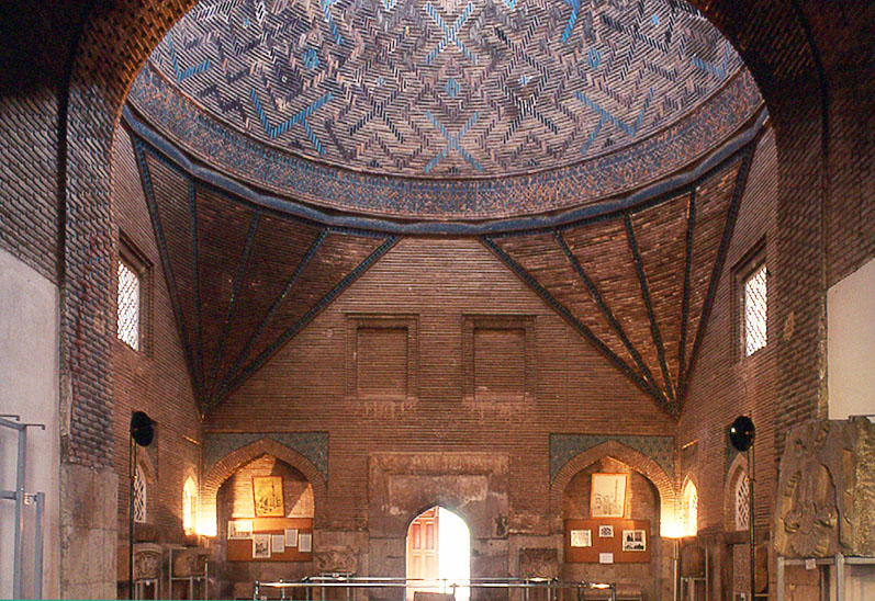 コンヤの インジェ・ミナーレ学院 スキンチやペンデンティヴでなく、トルコ式三角形で ドームの四隅を支えている。 カラタイ学院と同じように、ドームの頂部は採光のための穴だったので、真下に水盤(泉)がある。