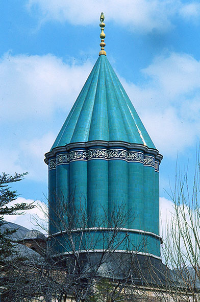 コンヤの メヴラーナ修道院(旋舞教団のテッケ)の メヴラーナ(ルーミー)廟 16本の円柱が並んでいるような姿をしている。13世紀末の建設と言われる。 The Mausoleum of Mevlâna, the late 13th century, Konya, Turkey