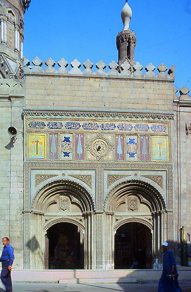 アズハルのモスク、カイロ 西北の主入口の門は、オスマン朝のアブド・アッラフマーン・カトフダー (Abd al-Rahman Katkhuda) によって加えられたアル・ムザイニーン 門 (Bab al-Muzayinin) で、「理髪師の門」(Gate of the Barbers) とも通称される。