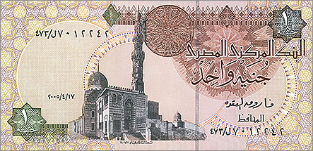 エジプトの1ポンド紙幣には、スルタン・カーイトバーイ廟+モスク が 描かれている。