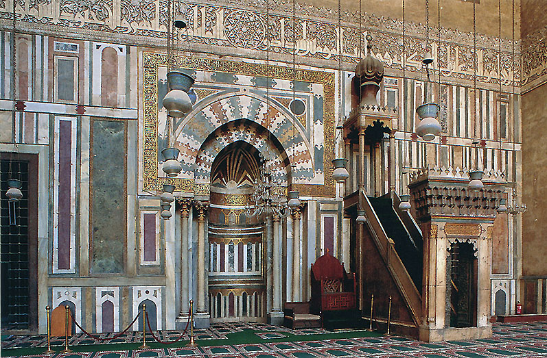 キブラ壁とミフラーブの装飾の華やかさは、エジプト随一である。