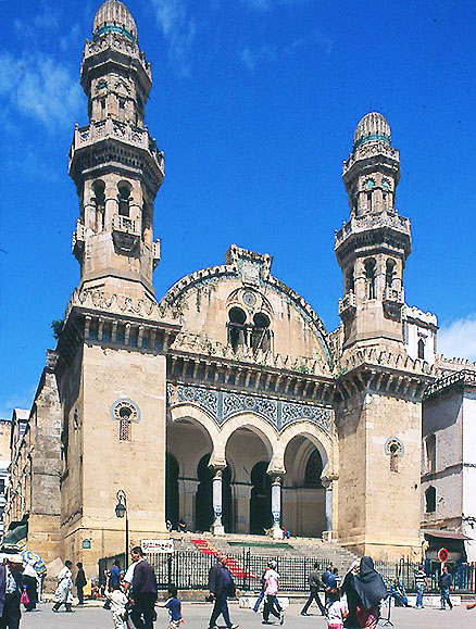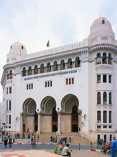 オランで最も印象深い建築作品は、フランスの建築家 アルベール・バリュ (Albert Ballu) の設計で 1903年から 1913年にかけて建設された、カトリックの サクレクール大聖堂であろう。現在は市立図書館となっている。その造形は、モスクに転用しても、まったく違和感がないだろうと思われる。 ![]()