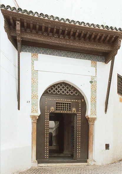 特にアル・ウバッド・モスクは、マリーン朝の建築の代表的作品のひとつと見なされている。1339年に スルタン、アブ−・エル・ハセヌによって建立された。正面入り口は7メートルの高さがあり、華麗なムカルナス・ドーム天井を戴く半外部のエントランス・ホールの階段を上がって木製の彫刻された古式ドアを通って中庭に至る、劇的な構成をしている。 ![]()