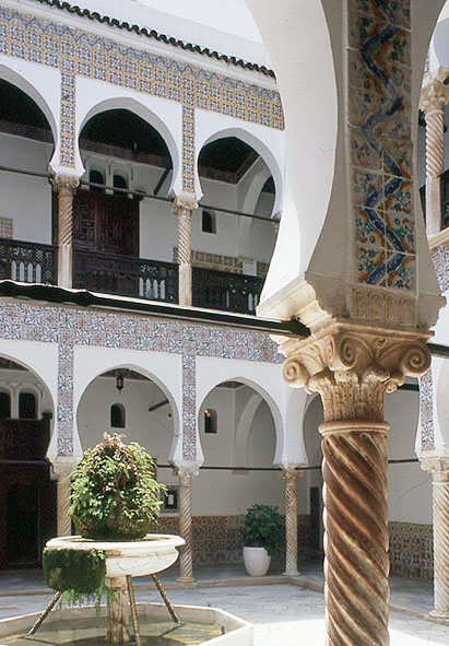 アルジェで最古の 旧・大モスク(ジャマー・エル・ケビール)は、ユースフ・ブン・タシュフィンの治世の 1097年頃に建設された。14世紀のミナレットは2面の道路に面した角に建ち、前面道路には、多弁形アーチが連続する 長いアーケードが面している。礼拝室は 38メートル× 46メートルの幅広矩形で、その中に 11メートル× 21メートルの 長方形の中庭が 切り取られている。礼拝室に並ぶ尖頭アーチの約半数は、私の知る限り 最も繊細巧緻な 多弁形アーチでできている。ムスリムのような顔をして中に入り、写真を撮ることができたが、その代わり、エントランスに置いてきた 靴が 盗まれていたのだった(モスクにおける 初めての体験)。