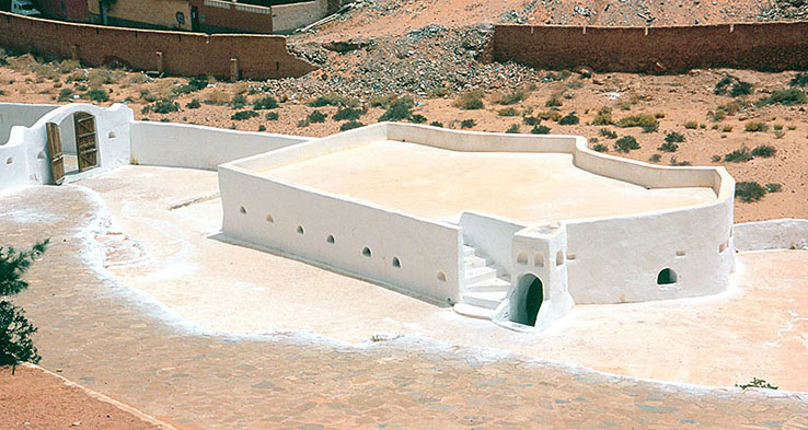 アフリカ式モスク エル・アットゥーフの シディ・イブラヒーム・モスク(アルジェリア) 白塗りされた 土のモスクで、ル・コルビュジエは このモスクの内外に インスピレーションを得て、ロンシャンの聖堂を設計したという。