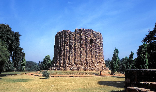 未完成に終わったアラーイ・ミナールの基部、クトゥブ、14世紀。