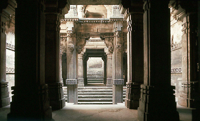 Dada Harir's Step-well, Ahmadabad, 1500 Looking back at the main stairs from a balcony surrounding the hall.