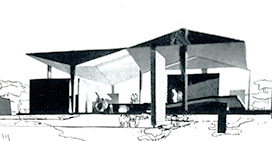 このパビリオンの原案は、1950年の「ポルト・マヨ計画」にまでさかのぼる(下図)。