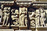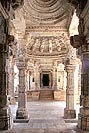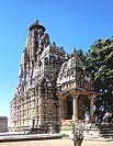 その「シカラ形式」が絶頂をきわめたのが、世に名高い カジュラーホの寺院群 であった。今は寒村にすぎないこの地も、かつてはチャンデッラ朝の首都として栄え、大小 85の寺院が建てられたというが、そのうち 25寺院ほどが現存している。そしてここでもまたヒンドゥとジャイナが共存し、ジャイナは 東群 の中に 4寺院を残す。 最も大きかったガンタイ寺院はポーチ部分しか残っていないので、全体像を見せるパールシュヴァナータ寺院は主だったヒンドゥ寺院群よりもやや小さい。しかし彫刻の密度はむしろこちらの方が高く、名品が多い。その外壁ではジナ像が脇に追いやられているので、建物も彫刻もヒンドゥ寺院とジャイナ寺院との間にほとんど区別がなくなってしまった。